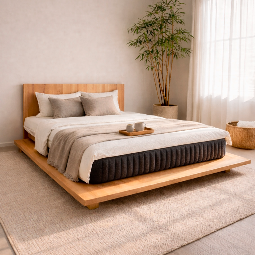 Camas de lineas bajas y diseño esencial, inspiradas en la estética japonesa y la calidez nórdica. Hechas para crear espacios de calma, equilibrio y descanso profundo, donde la madera y la simplicidad se convierten en protagonistas.