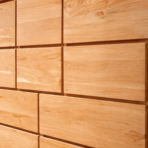 - Tirador: Rebajado en el borde de cada cajón.