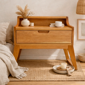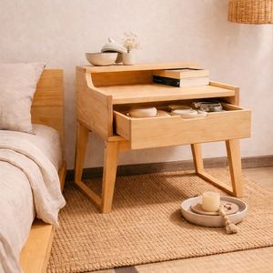 Velador Kobe, inspirado en el diseño Japandi y manufacturado con Lenga Patagónica, manteniendo lineas limpias. Es un mueble funcional, cálido y atemporal, pensado para un descanso en equilibrio.