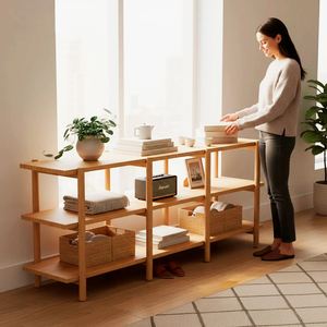 Sus niveles abiertos permiten exhibir libros, objetos decorativos o piezas especiales con elegancia, aportando orden y estilo a cualquier espacio. Ideal para livings, estudios o dormitorios, la repisa Nara se integra fácilmente en ambientes modernos, Japandi o minimalistas, elevando el carácter del espacio con la nobleza de la madera y un diseño pensado en durar.