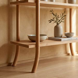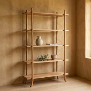 Repisa de lineas simples y diseño atemporal, hecha en madera de Lenga. Sus niveles abiertos aportan ligereza visual y funcionalidad, ideal para exhibir libros, objetos y plantas, sumando calidez y equilibrio a cualquier espacio.